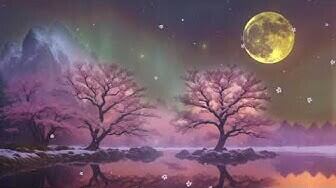 川沿いに咲く満開の桜に風が吹いてハラハラと散り、穏やかではあるが、少しの憂いもある春の風景を表しています。