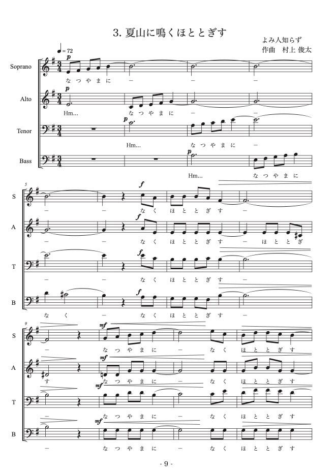 混声四部合唱のための「ほととぎす」”古今和歌集”より 3.夏山に鳴くほととぎす